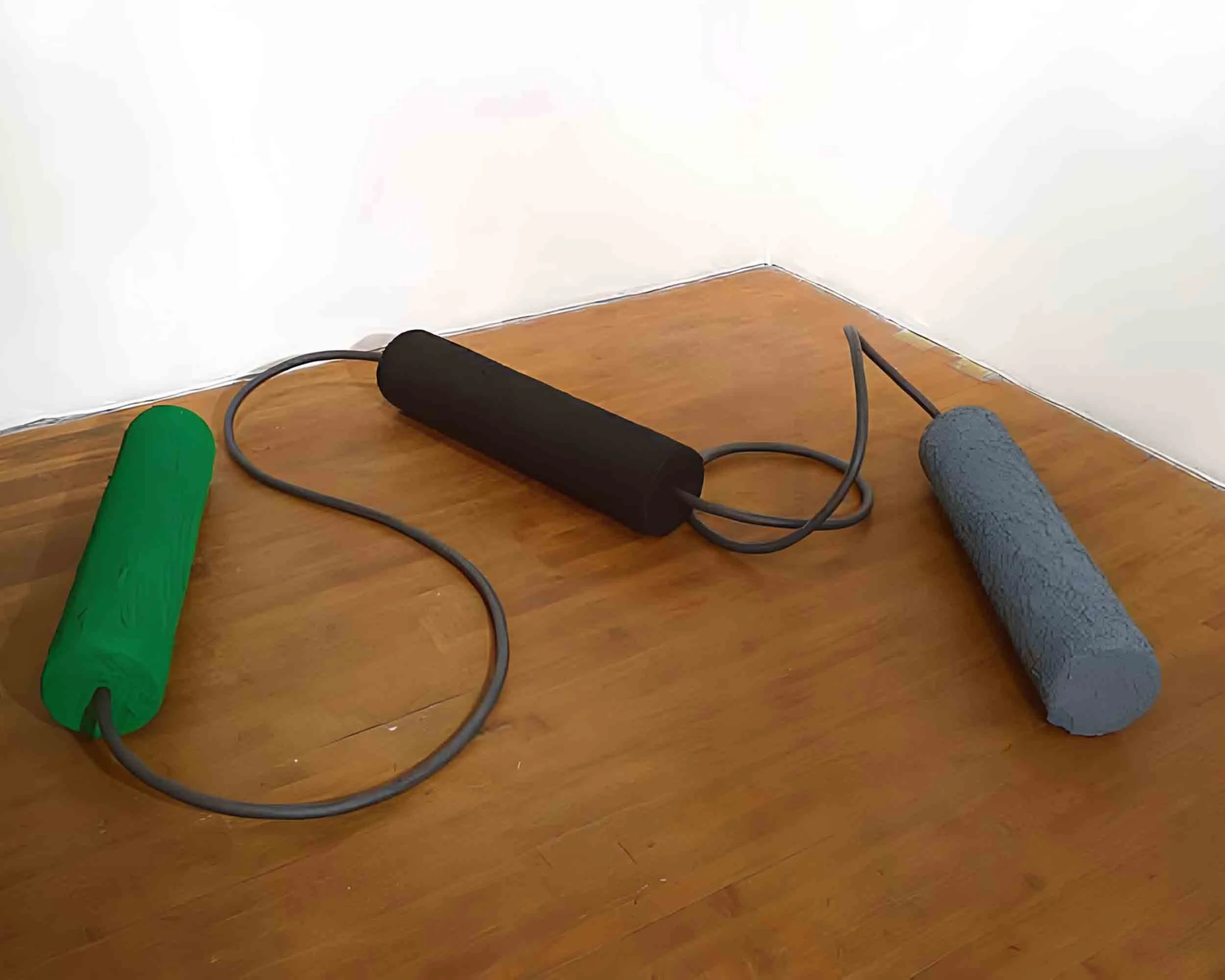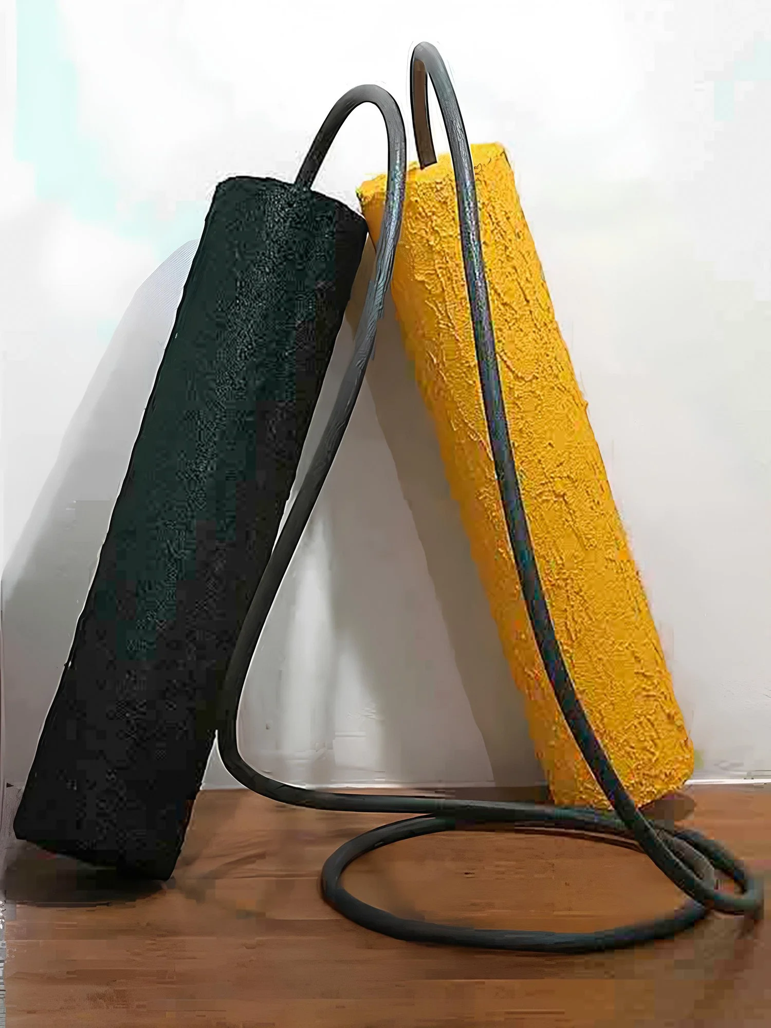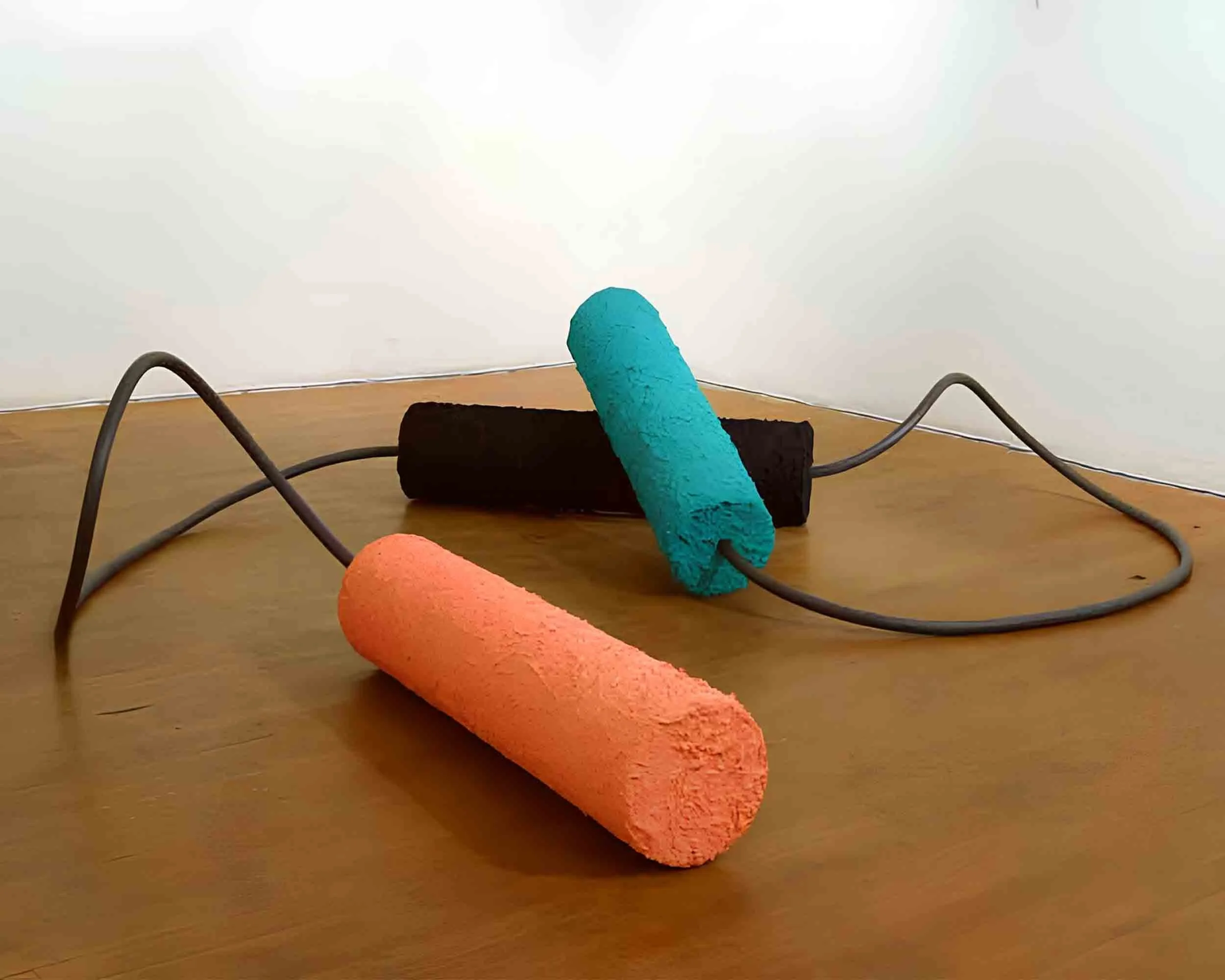 These works teeter on the brink of painting, drawing, sculpture, and installation and question the categorization of forms. They embody a dialectic of illusive opposites in dynamic tension—color and form, color and line, texture and shape, figure and ground, intentionality and unintentionality, mass and energy, presence and absence—serving as visual koans.